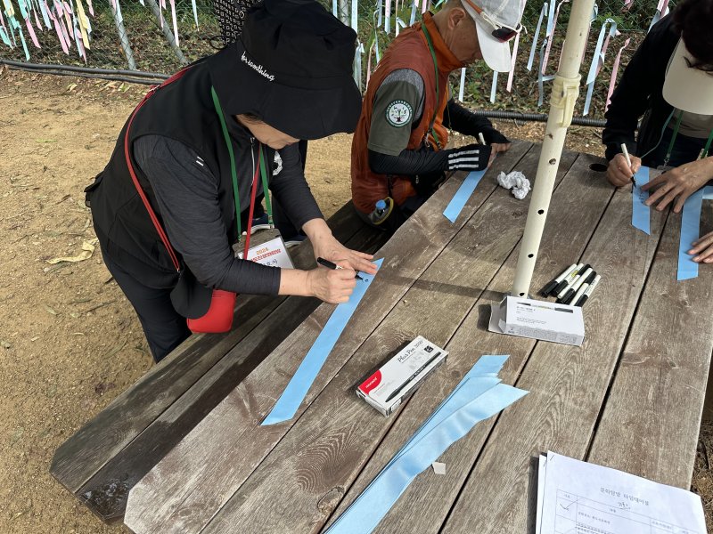 옆에 있는 울타리에 자신의 소망이 적힌 평화리본을 묶는 체험도 진행했습니다.