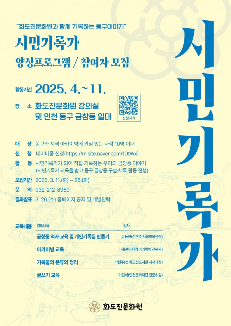 안녕하세요 화도진문화원입니다! 2025 지방문화원특성화사업으로 진행될 시민기록가 양성프로그램입니다.