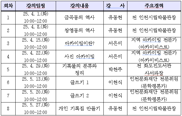 ※장소 : 화도진문화원 강의실 및 인천 동구 금창동 일대