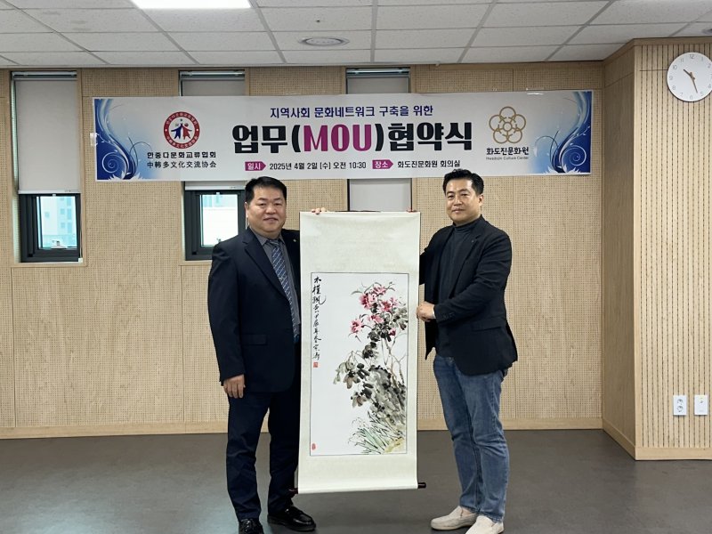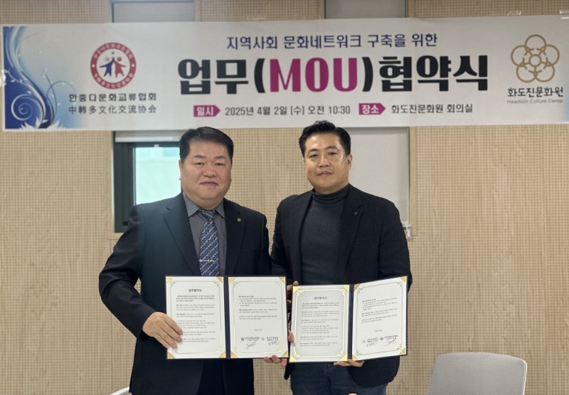 화도진문화원(원장 조장환)은 4월 2일(수) 오전, 한중다문화교류협회(이사장 구광회)와 지역사회 문화 발전을 위한 포괄적인 업무협약(MOU)을 체결했다. 이번 협약은 양 기관이 지역사회 네트워크 구축과 문화적 발전을 위해 상호 보유한 역량과 자원을 적극적으로 활용하고 협력하는 중요한 계기가 될 것이다.