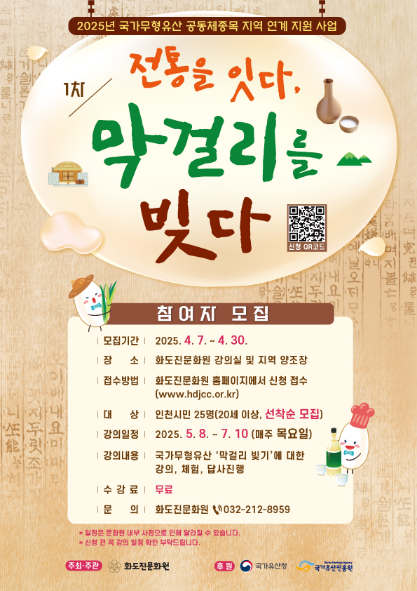 2025년 국가무형유산 공동체종목 지역 연계 지원 사업 - 전통을 잇다, 막걸리를 빚다 참여자 모집